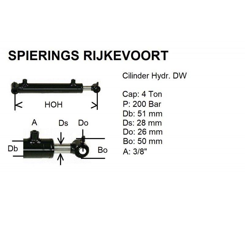 Cilinder hydr. S 200mm, Db 51mm, DW